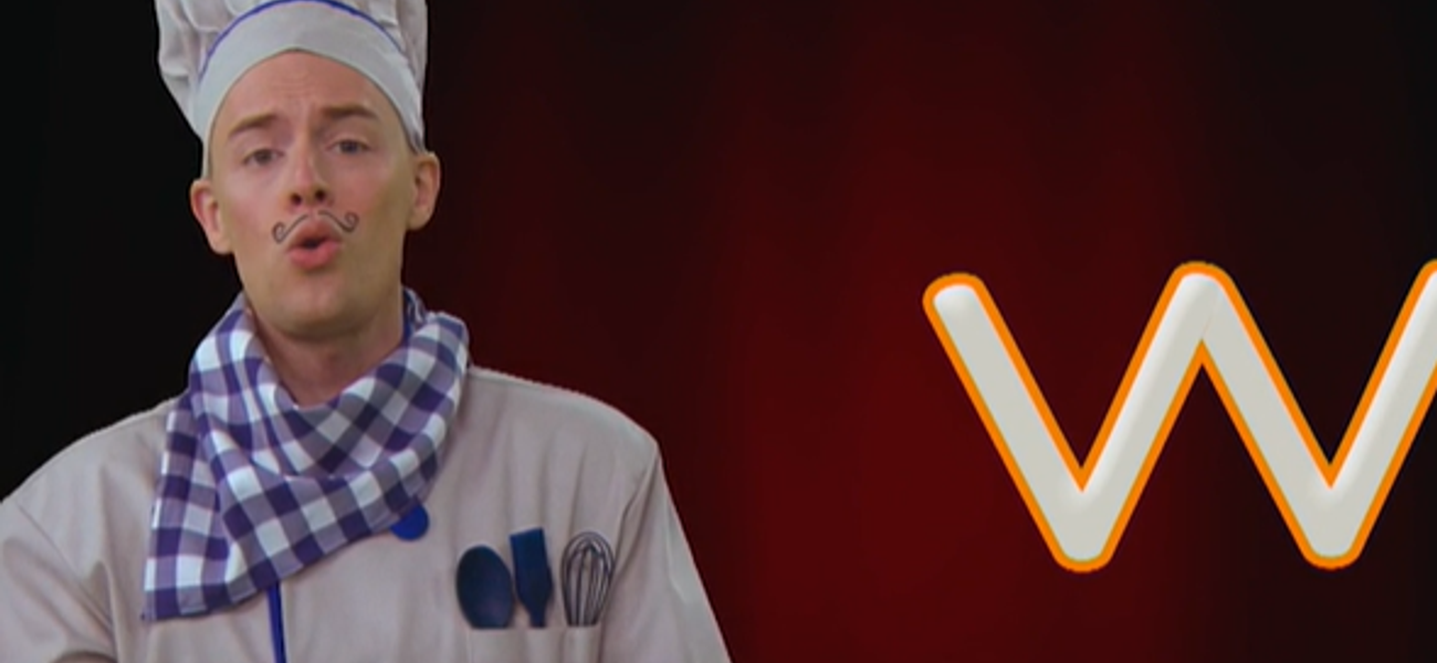A... B... C... Chef Alphabet adore l'opéra et les lettres de l'alphabet! Pas étonnant que sur scène, il s'amuse à chanter l'alphabet, encouragé par son fidèle public, des nouilles alphabet, ha ha! Apprends à écrire la lettre w minuscule avec Chef Alphabet.