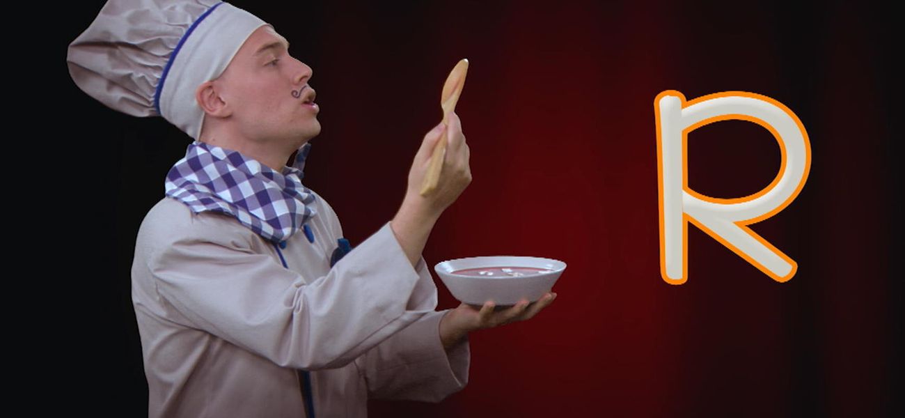 A... B... C... Chef Alphabet adore l'opéra et les lettres de l'alphabet! Pas étonnant que sur scène, il s'amuse à chanter l'alphabet, encouragé par son fidèle public, des nouilles alphabet, ha ha! Apprends à écrire la lettre R majuscule avec Chef Alphabet.