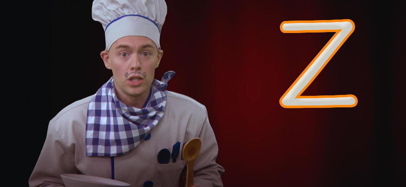 A... B... C... Chef Alphabet adore l'opéra et les lettres de l'alphabet! Pas étonnant que sur scène, il s'amuse à chanter l'alphabet, encouragé par son fidèle public, des nouilles alphabet, ha ha! Apprends à écrire la lettre Z majuscule avec Chef Alphabet.