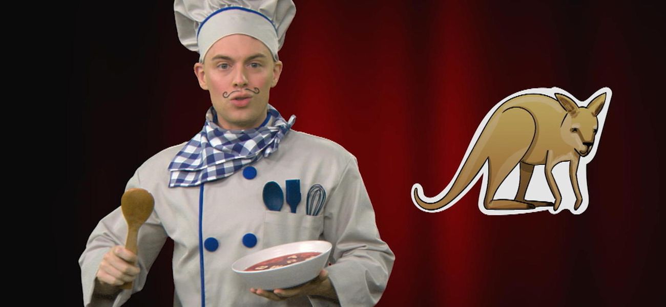 Chef Alphabet adore l'opéra et les lettres de l'alphabet! Koala... Kimono... Apprends des mots commençant par la lettre K avec Chef Alphabet, qui est encouragé par son fidèle public, des nouilles alphabet, ha ha!
