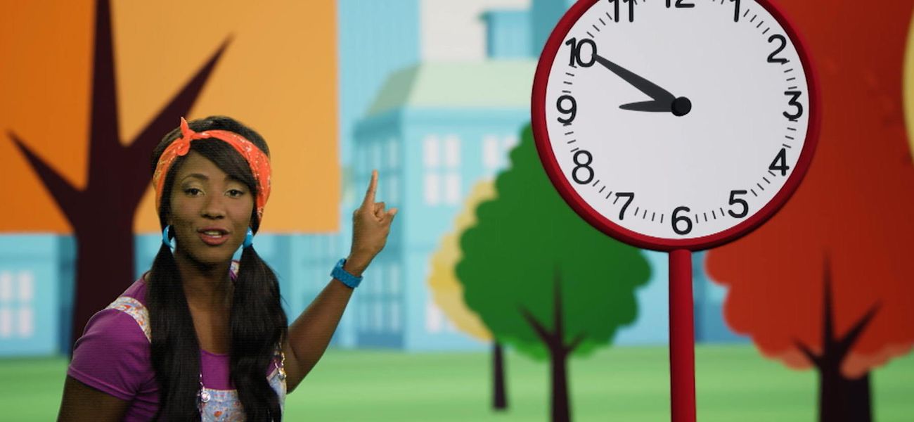 Rejoins Lexie dans le rigolo parc mathématique 1, 2, 3, jouons et découvre comment lire 9 heures sur une horloge.