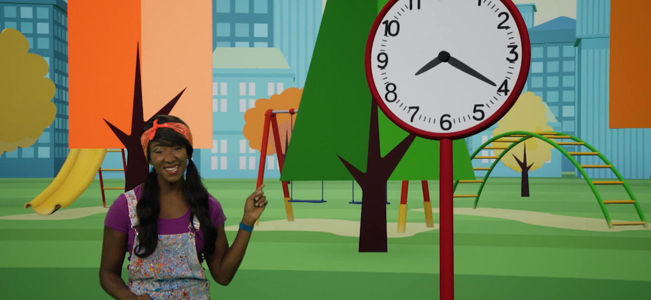 Rejoins Lexie dans le rigolo parc mathématique 1, 2, 3, jouons et découvre comment lire 30 minutes sur une horloge.