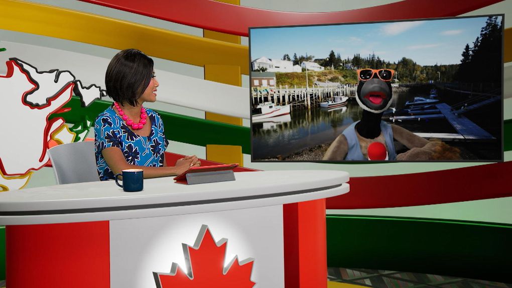 Aujourd'hui, la chef d'antenne Alice et son journaliste de terrain la marionnette Jean-Christopher Bernache nous font découvrir le Nouveau-Brunswick. C'est ici que se trouve la ville de Shediac, la capitale mondiale du homard.