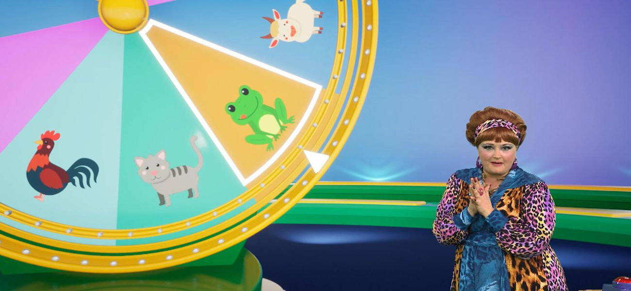 Bienvenue à « La roue des animaux »! Le jeu où Félina, tourne la roue pour découvrir l'animal du jour! Sauras-tu reconnaître le cri de la grenouille?