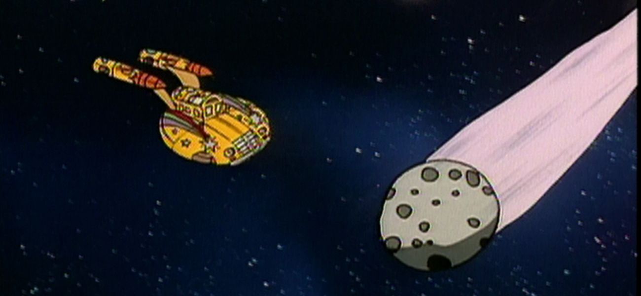 Le bus magique voyage en espace afin de détourner une astéroïde qui a une trajectoire fixe vers leur école. Cette exploration spatiale identifie les composantes du système solaire telles que la Lune et les planètes ainsi que les outils technologiques utilisés comme le télescope et le vaisseau spatial.