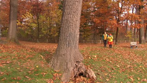 Louis and Josée have fun exploring words related to spatial senses by walking in a park: they introduce children to words such as behind, in front, between, around, etc.