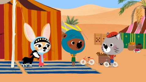 Mouk and Chavapa are in the Sahara desert, they meet a lost goat. They also learn how to wash dishes with sand versus water because water is precious. Aicha, Mouk and Chavapa go to the community well to get water. It is at this place that the goat finds his master and his herd.