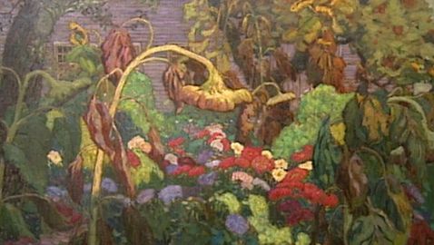 The children describe the 1916 artwork The Tangled Garden by J. E. H. MacDonald.