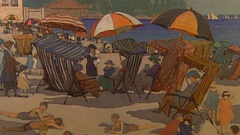 Children describe the 1923 artwork Sunnyside, Toronto by Mary E. Wrinch.