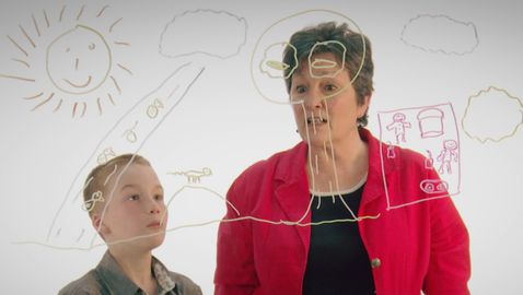 Dominic and his grandmother Ginette draw a memory they share, a picnic, and tell the story.