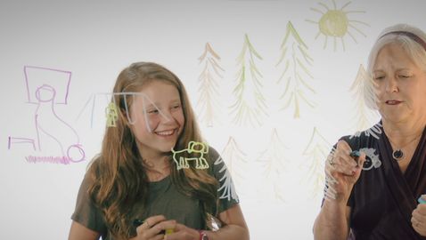 Chloë and her grandmother Sonia draw a memory they share, a hole-in-one in mini-golf, and tell the story.