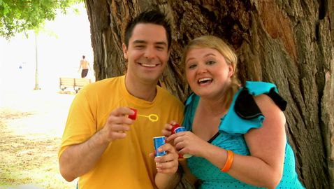 It's summertime! Louis and Josée introduce us to the activities and characteristics of this season in fun little videos. Here, they blow bubbles.