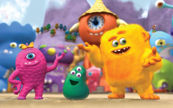 Concept: shapes. While he is at his nephew's birthday, the All-Grumpy Monster would like the Monster Math Squad to take his dog Waffle for a walk.