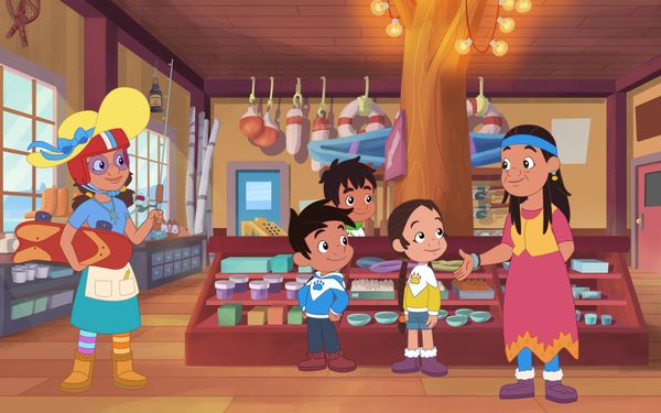 Due to Theo's grand culinary ambitions, the friends find themselves covered in dough from head to toe. After finding Kookum's lost recipe card, they prepare delicious bannock to offer to others. This sharing is a sign of respect for the community!