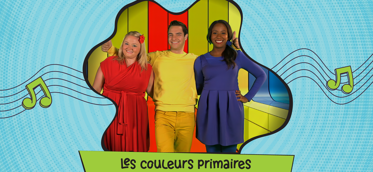 Louis, Josée and Lexie demonstrate in song how primary colors are transformed into secondary colors.