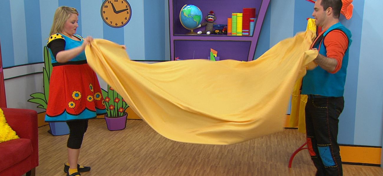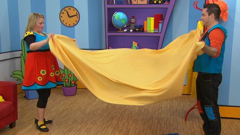 Josée and Louis collaborate in various circumstances. Josée helps Louis fold a large blanket.