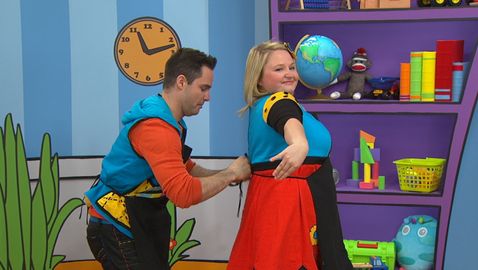 Josée and Louis collaborate in various circumstances. Josée and Louis help each other tie their aprons.