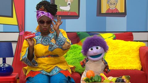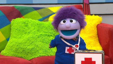 Madame Bonheur and Charlie dress up and play different professions. Charlie is dressed as a cook and Madame Bonheur is painting the wall.