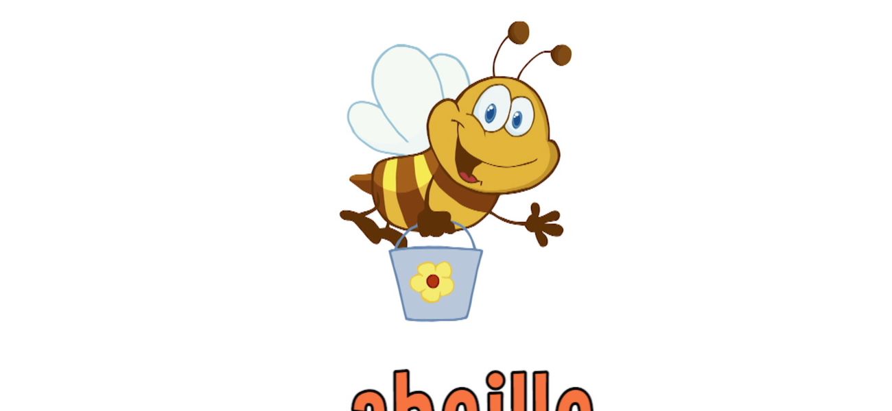 Charlie introduces us to the letters of the alphabet. Each of the twenty-six letters is illustrated with a word. Charlie introduces us to the letter A with the word “abeille.”