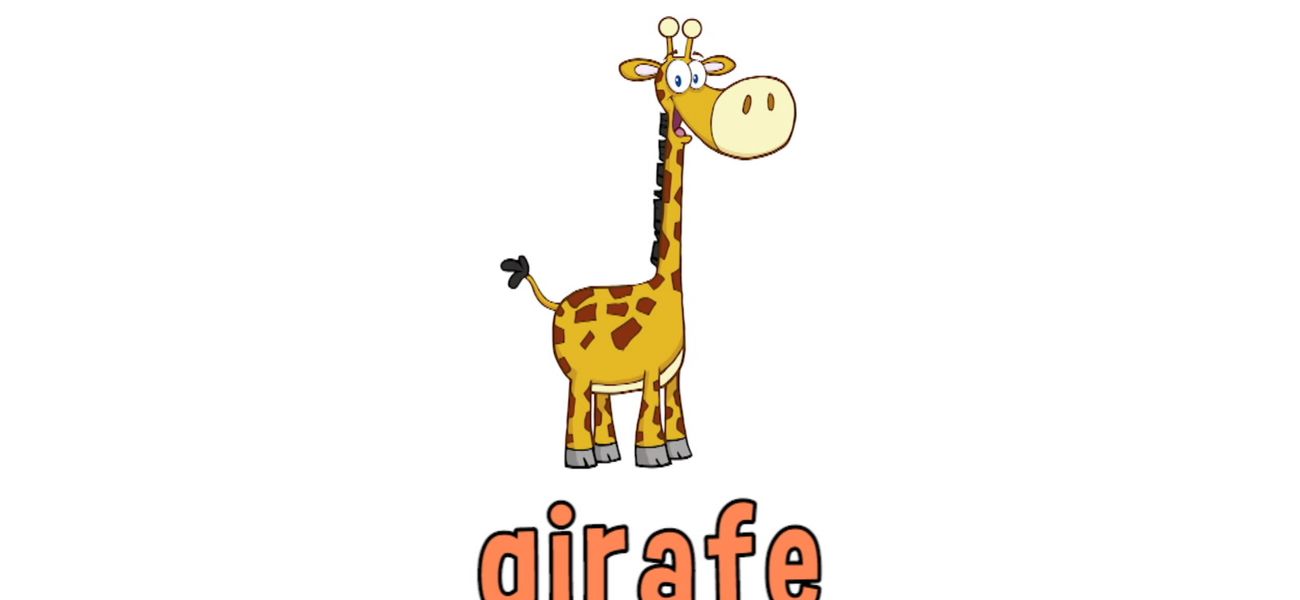 Charlie introduces us to the letters of the alphabet. Each of the twenty-six letters is illustrated with a word. Charlie introduces us to the letter G with the word “girafe.”