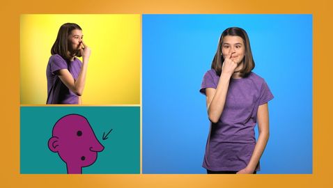 Your friend Emma is waiting to show you some new sign language (LSQ) words. Today, learn some elements of the human body. She will show you how to do it: eyebrow, eye and nose.
