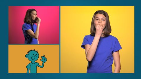 Your friend Emma is waiting to show you some new sign language (LSQ) words. Today, learn how to express if you are hungry or thirsty. She will show you how to do it: hungry, thirsty, eat and drink.
