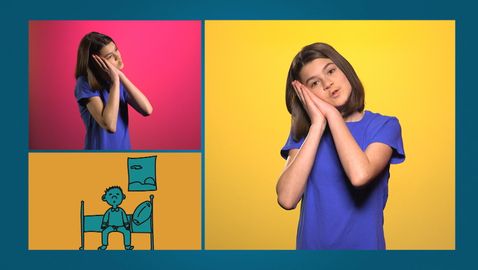 Your friend Emma is waiting to show you some new sign language (LSQ) words. Today, learn some of the actions in your daily routine. She'll show you how to do: go to bed, sleep and wake up.