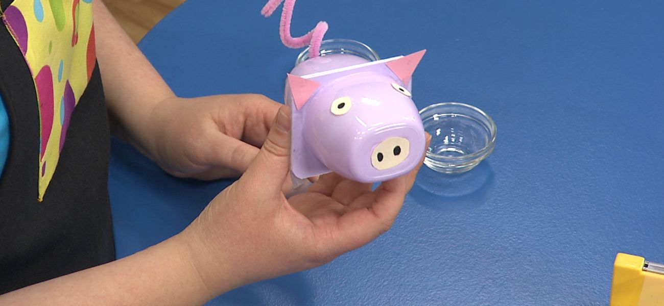 Josée found some pink yogurt containers in the recycling box. She decides to make a cute pig for Lexie. Look carefully at the steps and materials needed to make this craft. Do you think Lexie will like her surprise?