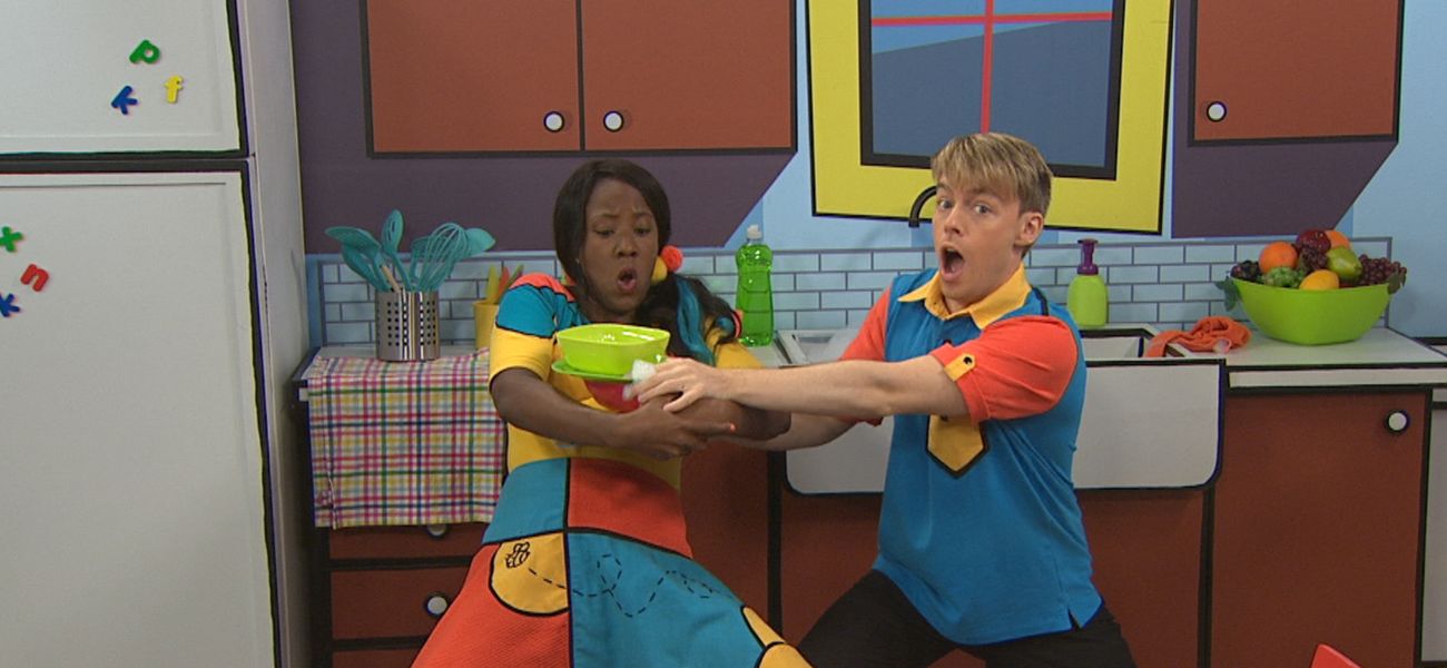 Lexie and Christopher wash the dishes and pretend to be statues when the music stops!