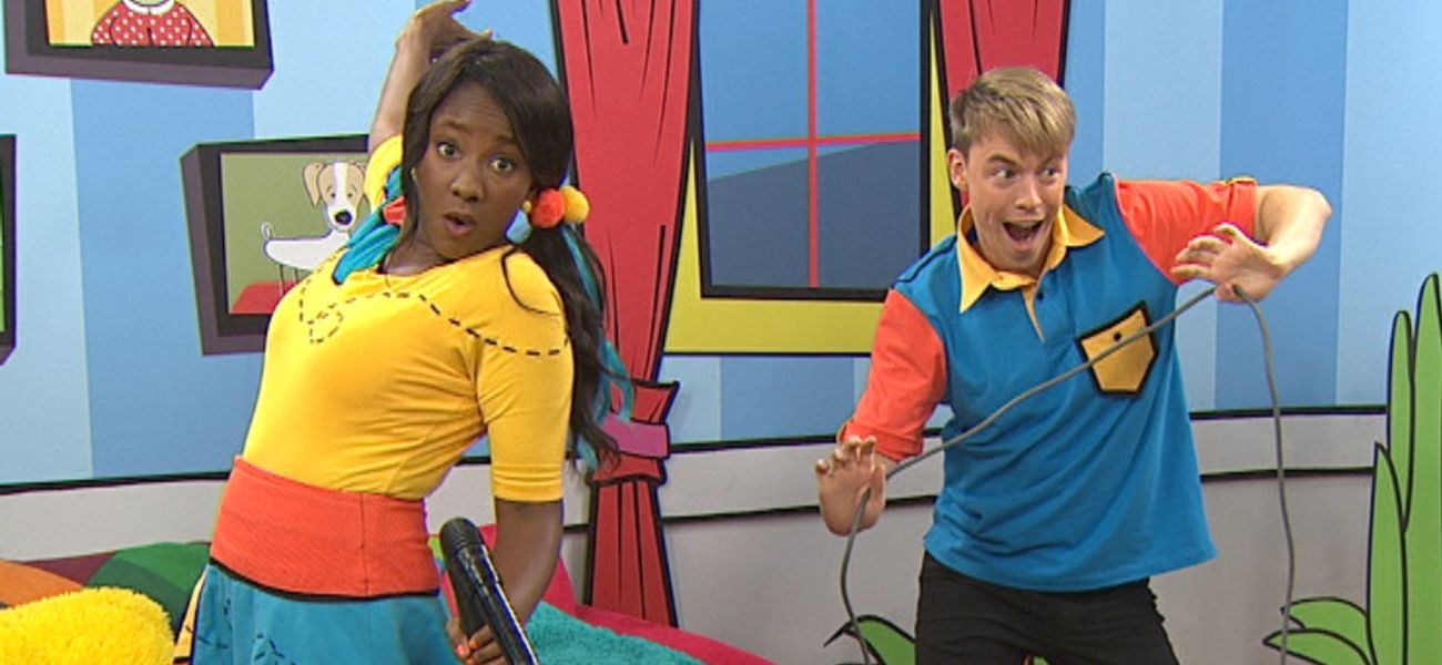 Lexie and Christopher do different household chores and play the statue when the music stops! Here they are vacuuming.
