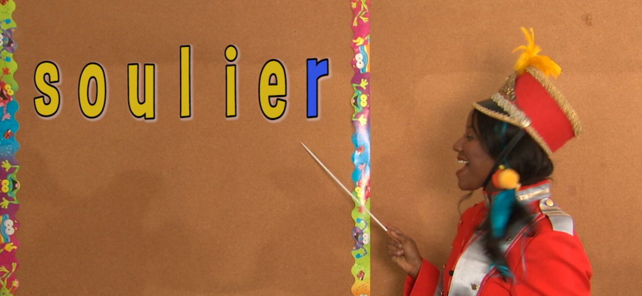 Learn to spell with Lexie. She asks a group of students how to spell a word, and they respond by marking each letter with rhythm and emphasis. Today, Lexie and her friends are spelling the word “soulier” (shoe). Objective: Learn to spell using music and movement.