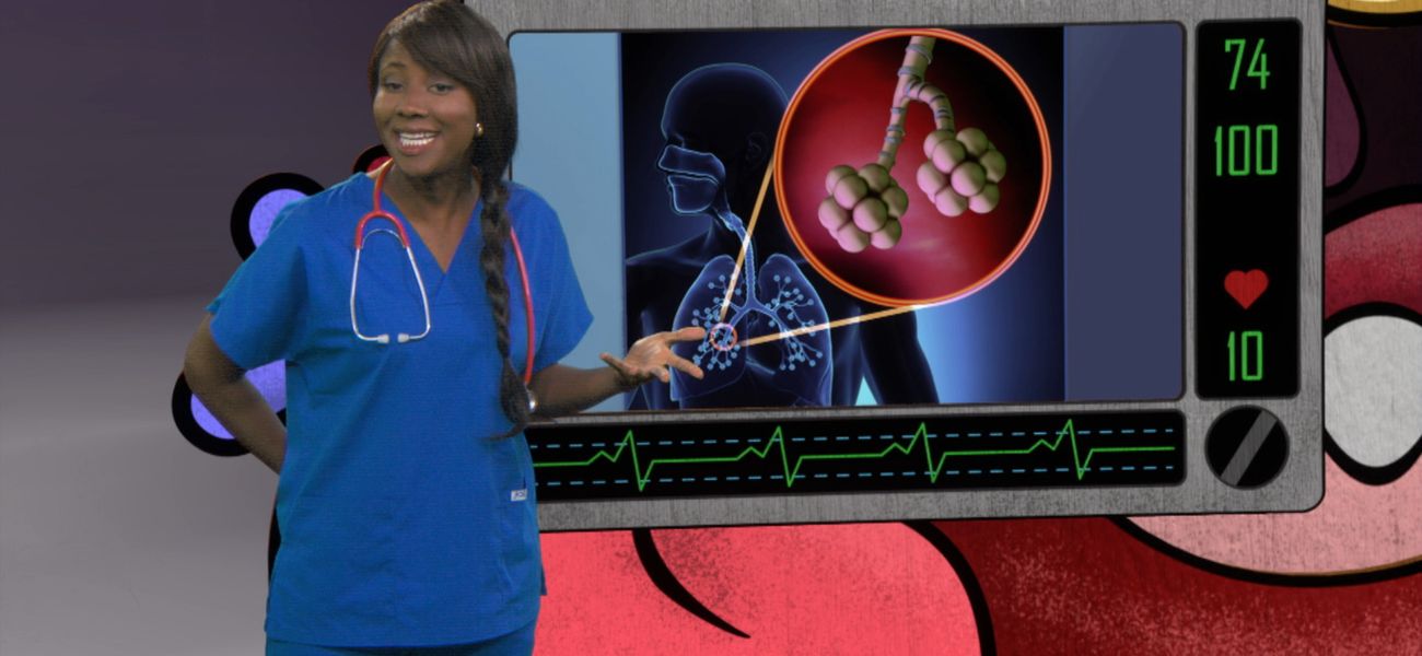 Lexie explains that the surface of the lungs and their alveoli is as big as a tennis court.