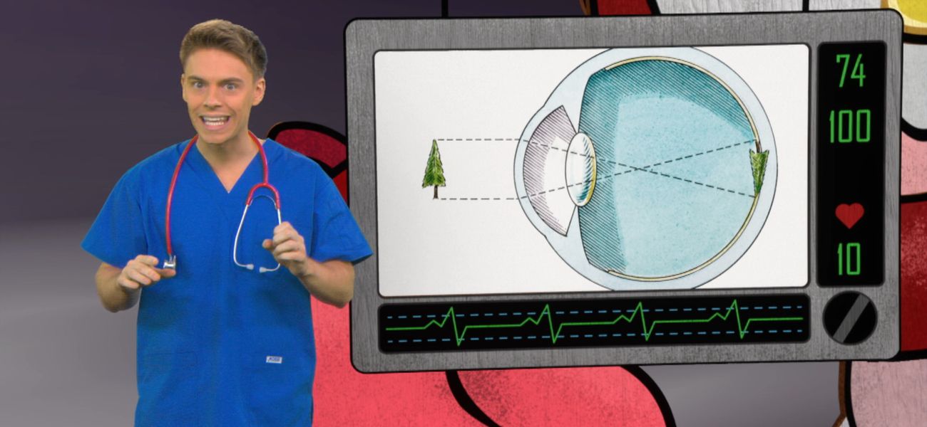 Christopher explains that the images captured by the eye are reversed before going to the brain, which gives them their original position.