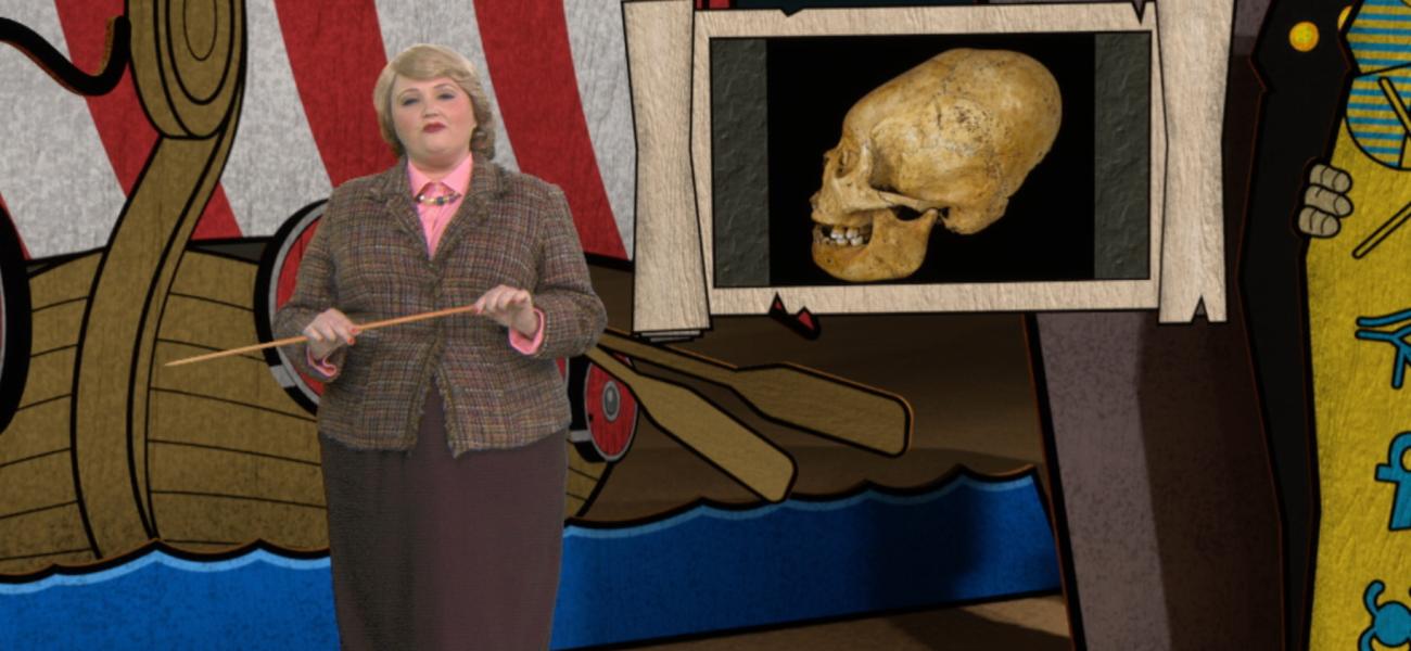 Josée explains that some Incas put bandages around the head of their baby so that their skull lengthens growing up.