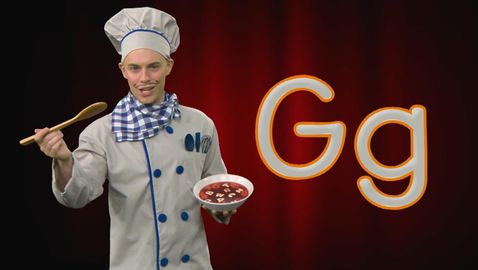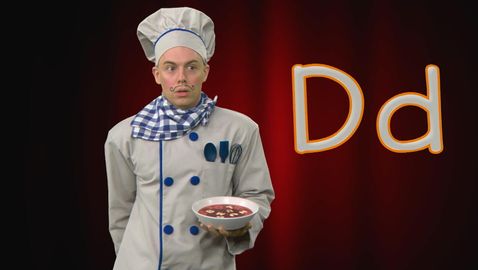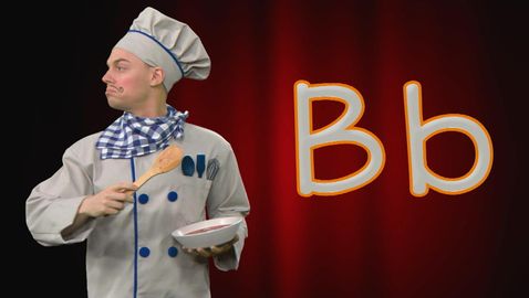 A ... B ... C ... Chef Alphabet loves opera and the letters of the alphabet! No wonder that on stage, he enjoys singing the alphabet, encouraged by his loyal audience, alphabet noodles, ha ha! Learn to pronounce the letter b with Chef Alphabet.