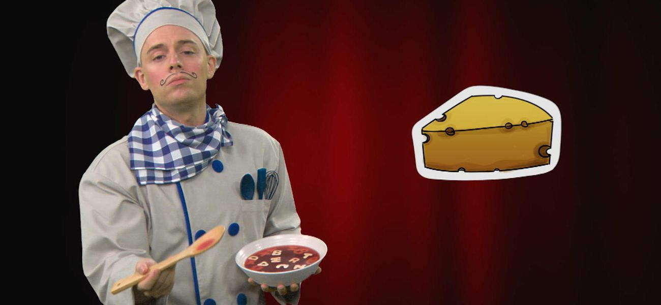 Chef Alphabet loves opera and the letters of the alphabet! Fromage... Fourmi... Learn words starting with the letter F with Chef Alphabet, who is cheered on by his loyal audience, Alphabet Noodles, ha ha!