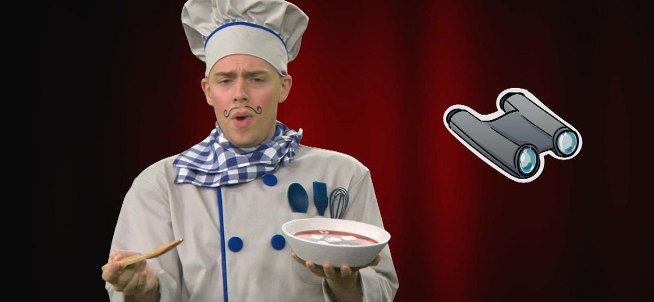 Chef Alphabet adore l'opéra et les lettres de l'alphabet! Jambon... Jardin... Apprends des mots commençant par la lettre J avec Chef Alphabet, qui est encouragé par son fidèle public, des nouilles alphabet, ha ha!