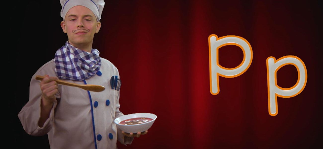 Chef Alphabet loves opera and the letters of the alphabet! Papillon... Pomme de terre... Learn words starting with the letter P with Chef Alphabet, who is cheered on by his loyal audience, alphabet noodles, ha ha!