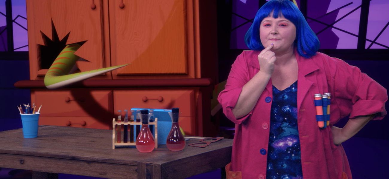 Using your sense of sight, make the funny Doctor FrankenSENS guess the coloured pencil that is hidden under the bell in her laboratory.