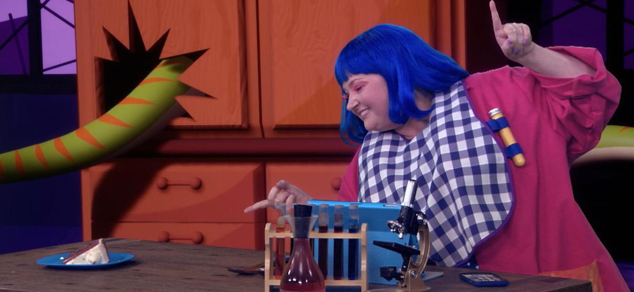 Using your sense of taste, make the funny Doctor FrankenSENS guess the cake hidden under the bell in her laboratory.