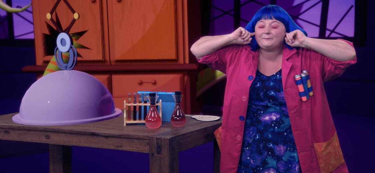 Using your sense of hearing, make the funny Doctor FrankenSENS guess the hammer and the nail hidden under the bell in her laboratory.