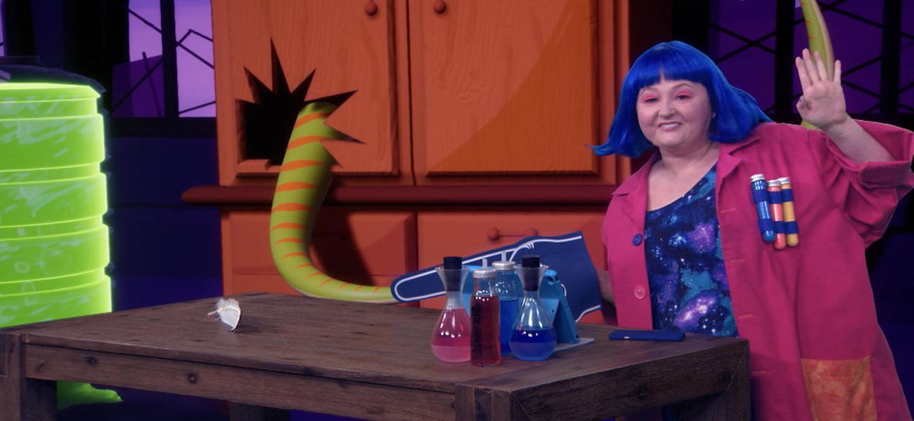 Using your sense of touch, make the funny Doctor FrankenSENS guess the feather hidden under the bell in her laboratory.