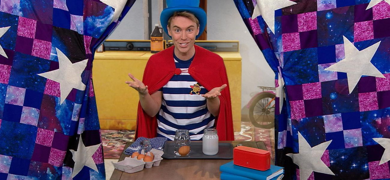 Christopher floats an egg and abracadabra... He discovers it's science, as the salt takes up space in the water and pushes the egg to the surface.