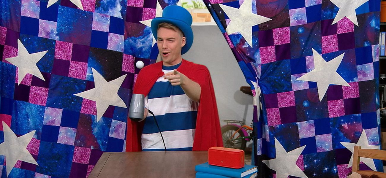 Christopher floats a tennis ball in the air and abracadabra... He discovers that it's science, because the air in the dryer moves faster than the air around us, causing the ball to float.
