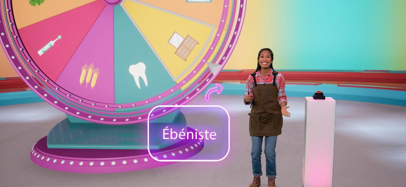 Alice turns the wheel of the game and the job of the day is revealed to her... cabinetmaker! She discovers many things about this job.