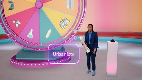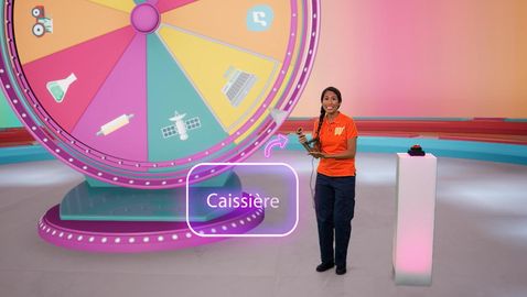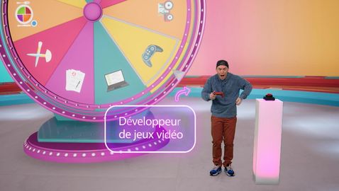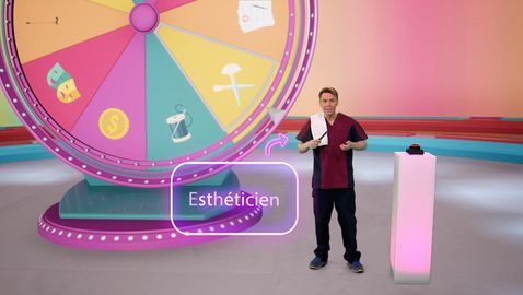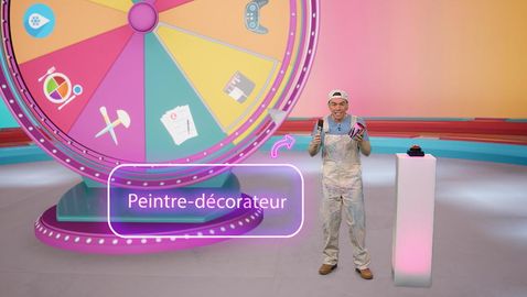 Christopher turns the wheel of the game and the job of the day is revealed to him... arborist! Wow, he discovers a lot of things about this fascinating job: what it consists of, what are the studies to do, etc.