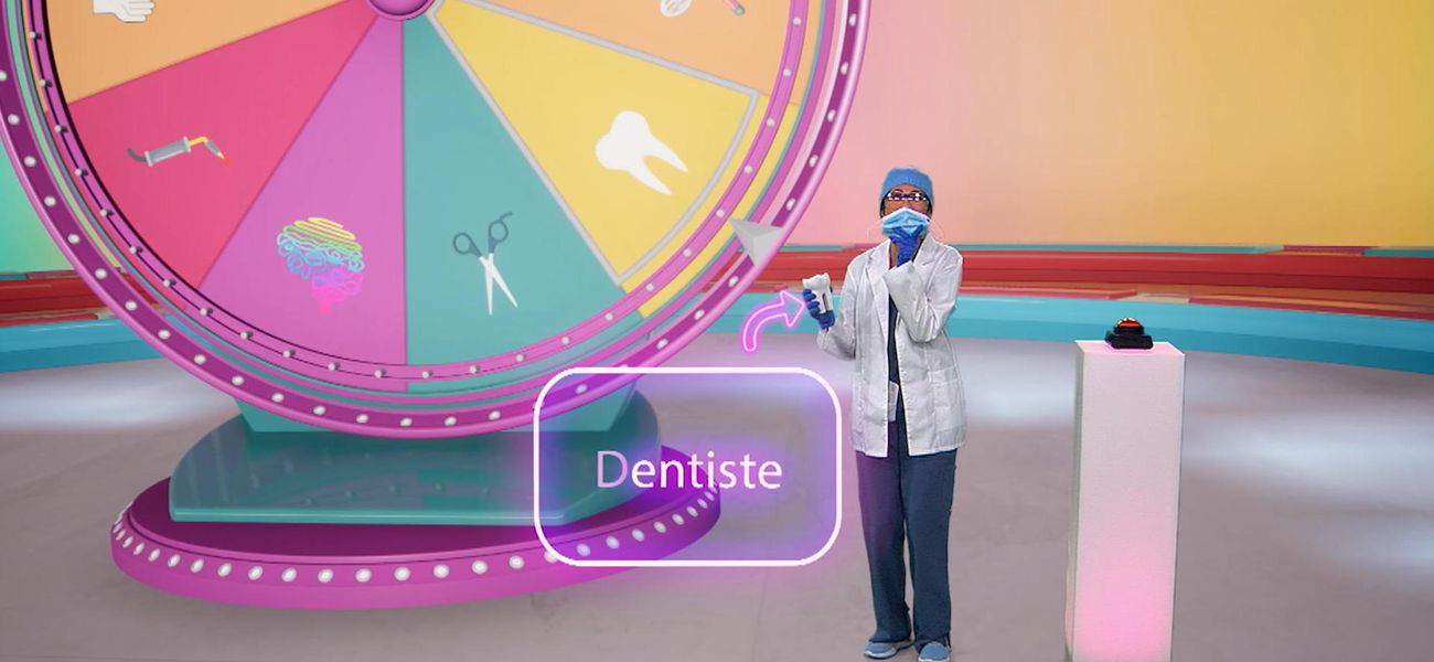 The player Alice turns the wheel of the game and the job of the day is revealed to her... dentist! She discovers many things about this fascinating profession.