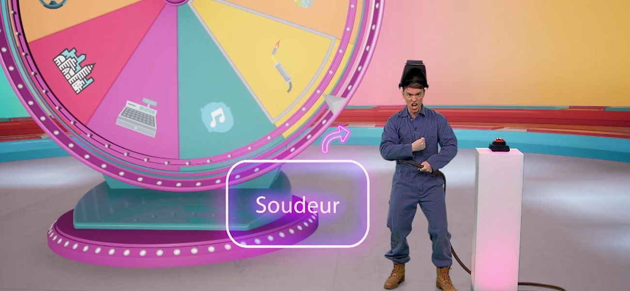 Christopher spins the game wheel and the job of the day is revealed to him... welder! Wow, he discovers a lot about this fascinating job.