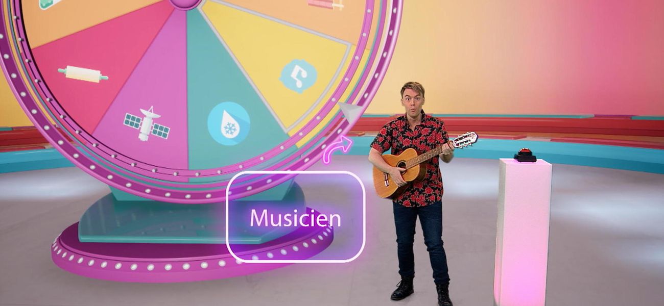 Christopher spins the game wheel and the job of the day is revealed to him... musician! Wow, he discovers a lot about this exciting job.