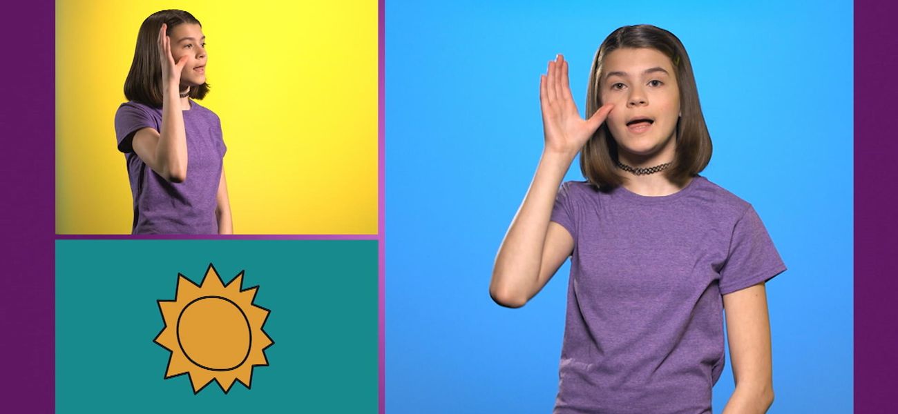 Your friend Emma is waiting to show you some new sign language (LSQ) words. Today, learn about the weather. She'll show you how to do it: sun, cloud, rain and snow.